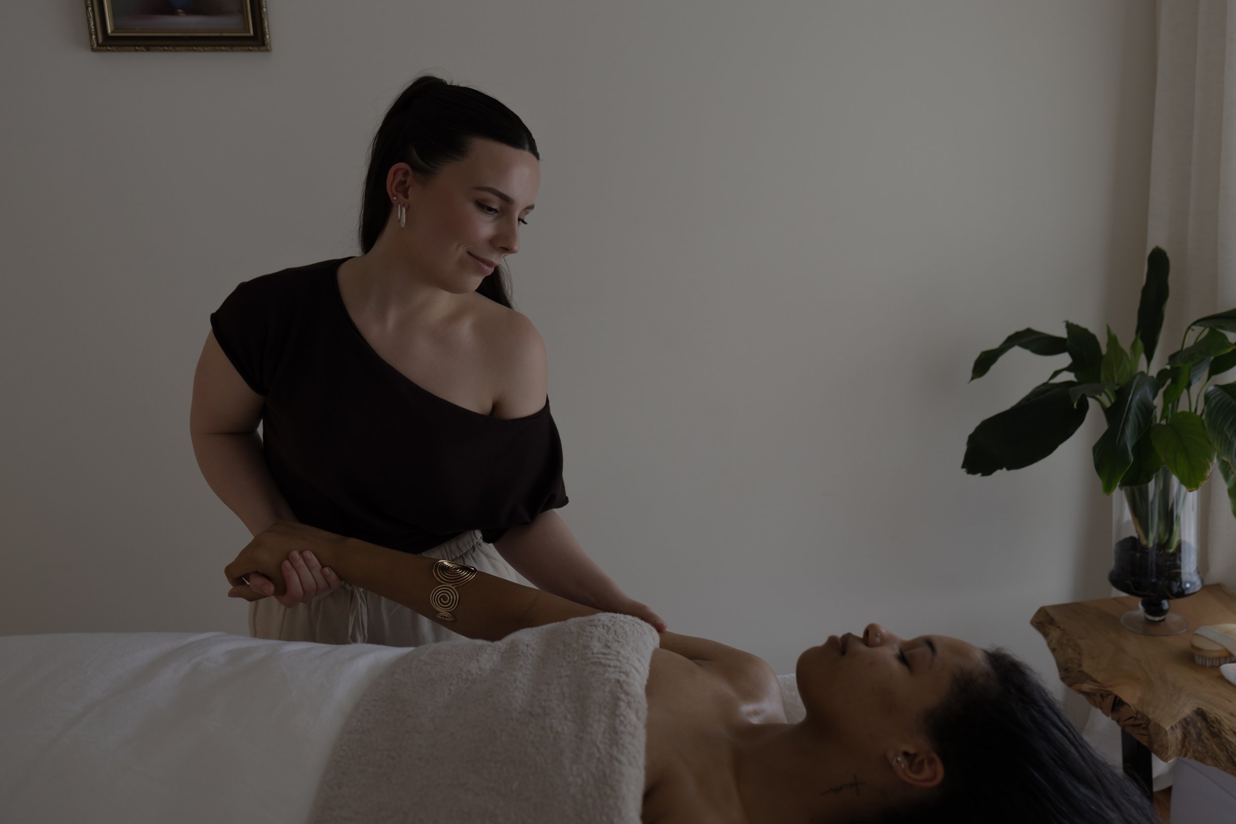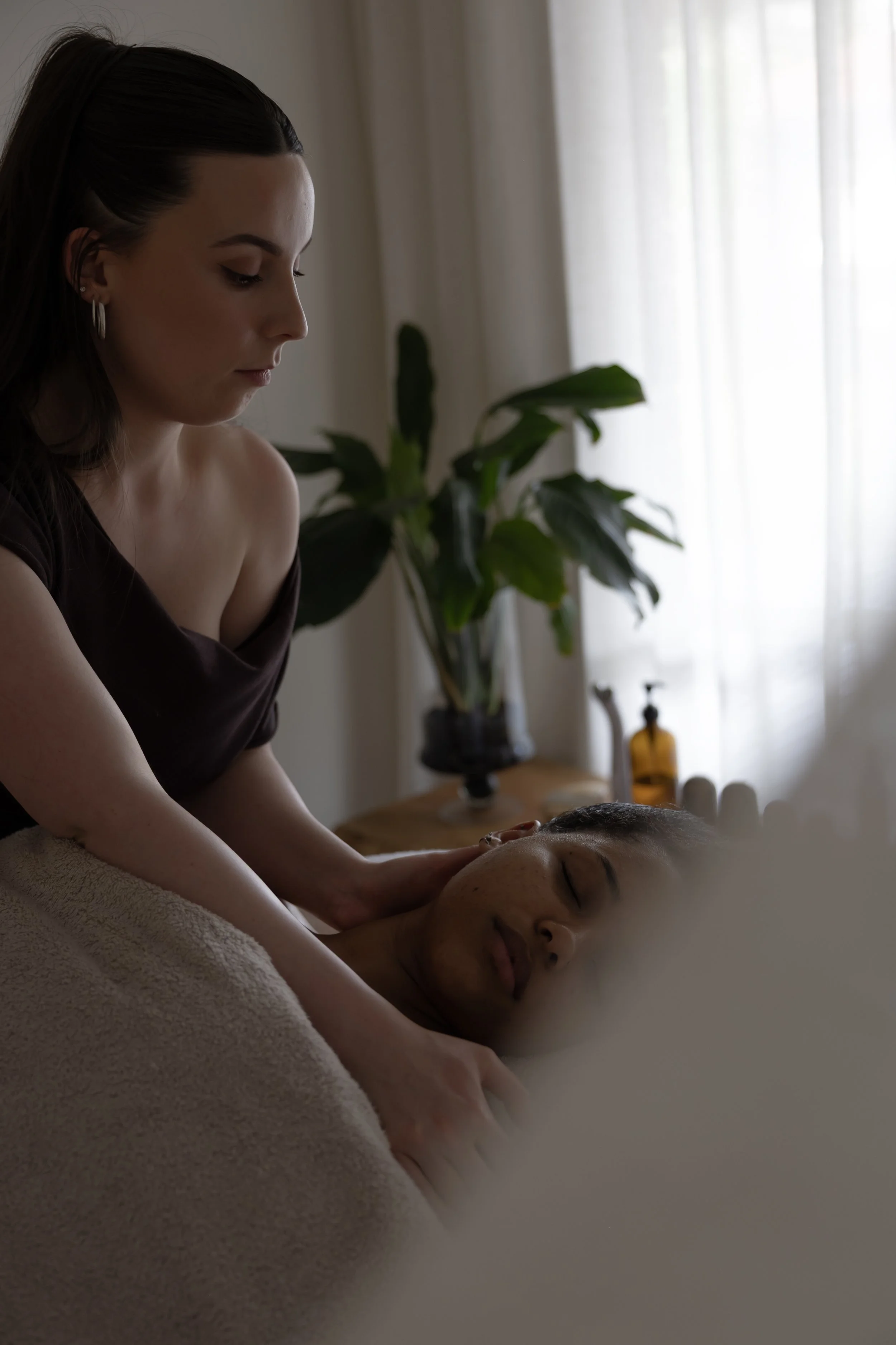 Cooler months asks us to slow down. To turn inward. To let the body catch up with everything it's been holding. This treatment begins at the skin - a custom seasonal facial with warm steam, enzyme exfoliation and completely bespoke serums and masks chosen for your skin on the day. While LED light therapy works on your face, Maddy turns her attention to your abdomen. Through gentle breathwork and rhythmic abdominal massage, she works the large intestine, the diaphragm and the lymphatic pathways of the gut - guiding your body to exhale, to release, to shift into its natural rest and digest state. Then the LED moves to the tummy, red light warming the belly while the facial closes with the same intentional touch it began with. You will leave lighter. Clearer. More settled in your body than you knew you needed to be.
